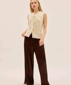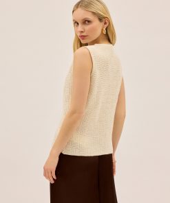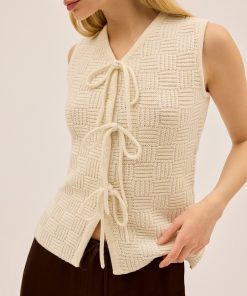 A fresh spin on a bestselling silhouette. The Casey vest is crafted from a geometric textured knit in a soft ivory tone, with a flattering high V-neck and feminine tie fastenings along a concealed button placket.