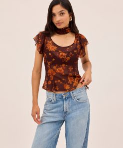 The Clementina top is crafted from lightweight, semi-sheer viscose georgette in our in-house designed Autumn Rose print. Featuring a scooped neckline and delicate frilled short sleeves, it comes with a separate matching tie that can be styled at the neck or worn your way. An effortlessly romantic piece with styling versatility built in.