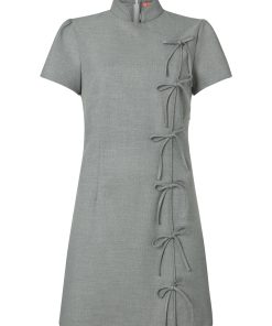 The Harlow dress is a KITRI icon for a reason. This bestselling silhouette returns in soft, grey deadstock tailoring fabric, blending sharp lines with feminine charm. Featuring a flattering cheongsam-inspired shape, tie-front detail, and a subtle split at the leg, it’s the perfect piece to take you from desk to dinner with ease.