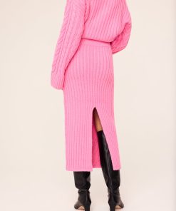 Add a pop of colour to your winter wardrobe with the perfect knit skirt. Imelda is a cosy midi-length knit skirt in patched cable knit with a ribbed waistband and centre-back split. Pair her with a white tee for an laid-back look, or with the matching Everly Pink V-Neck Jumper for the ultimate winter co-ordinated look.