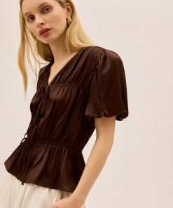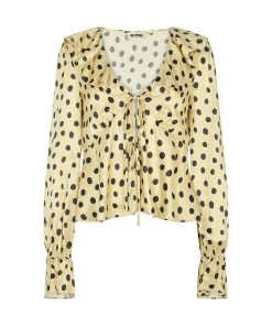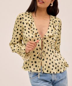 Romantic and effortless, the Ione top is new silhouette in soft, fluid viscose satin. Designed in timeless polka dot in butter soft yellow hue, it features a deep V-neckline with delicate frill trim, a tie-front fastening, and long sleeves finished with softly gathered cuffs. An easy statement piece that adds a touch of femininity to everyday looks.