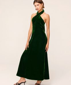 KITRI Women’s Neve Green Velvet Halter Dress