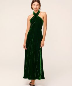 KITRI Women’s Neve Green Velvet Halter Dress
