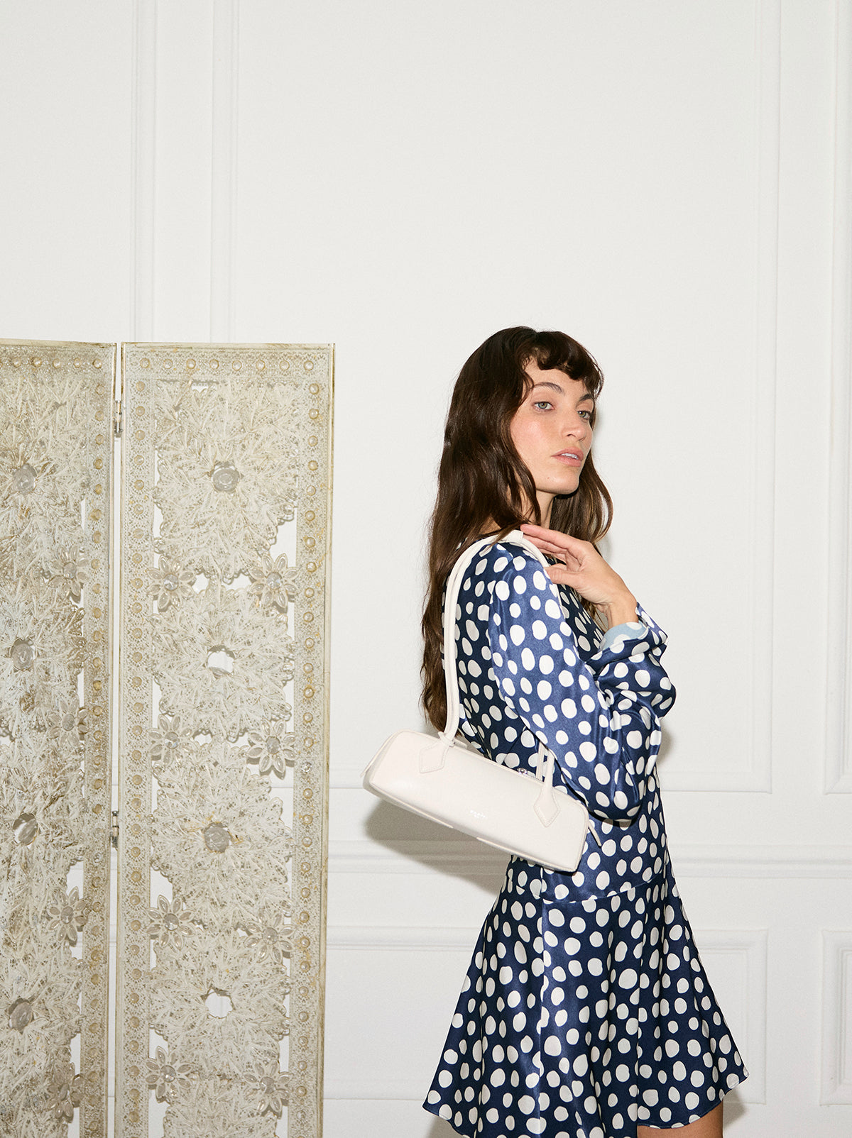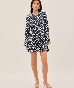 Flirty, fun, and effortlessly chic—the Stefania Mini Dress is your new go-to for day-to-night dressing. Designed in fluid satin with a timeless navy polka dot print, this long-sleeve mini dress features fluted cuffs and a softly flared hem for the perfect touch of movement.