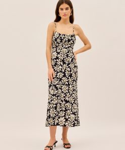 KITRI Women’s Velma Daisy Print Midi Dress | Black Daisy