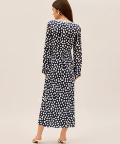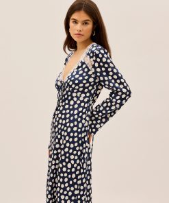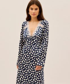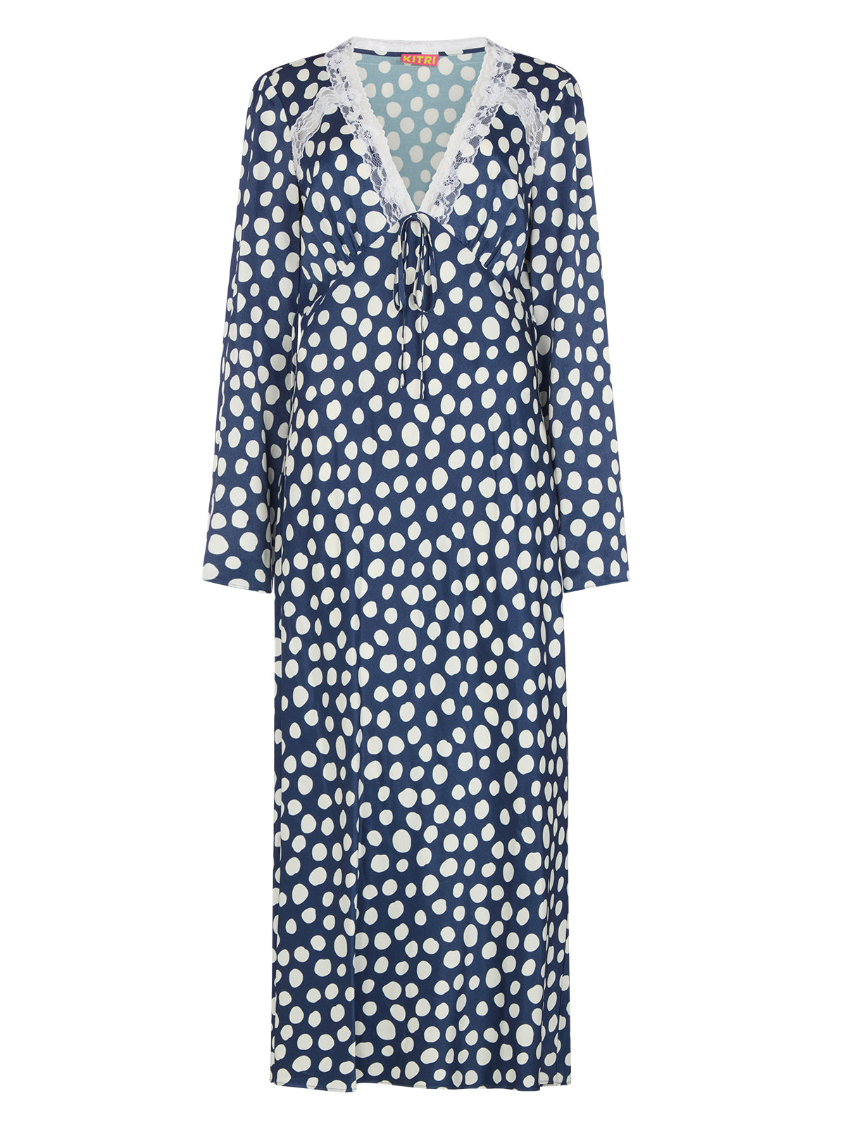 KITRI Women’s Zelda Navy Polka Dot Satin Dress | Navy Polka Dot