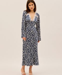 KITRI Women’s Zelda Navy Polka Dot Satin Dress | Navy Polka Dot