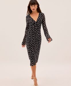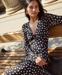 KITRI Women’s Carrie Black Polka Dot Dress | Black Polka Dot