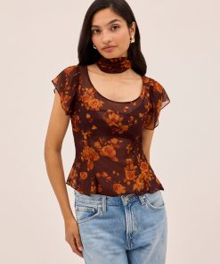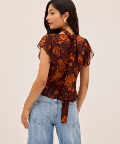 The Clementina top is crafted from lightweight, semi-sheer viscose georgette in our in-house designed Autumn Rose print. Featuring a scooped neckline and delicate frilled short sleeves, it comes with a separate matching tie that can be styled at the neck or worn your way. An effortlessly romantic piece with styling versatility built in.