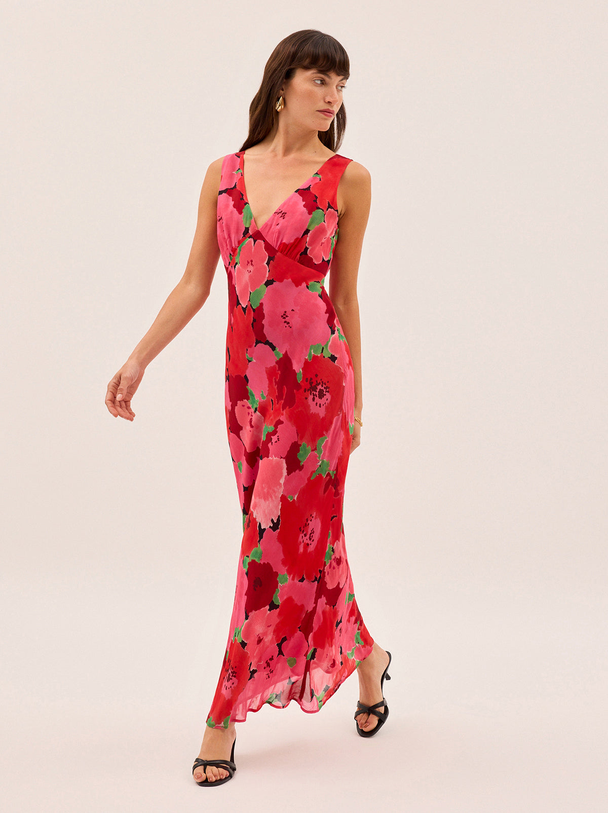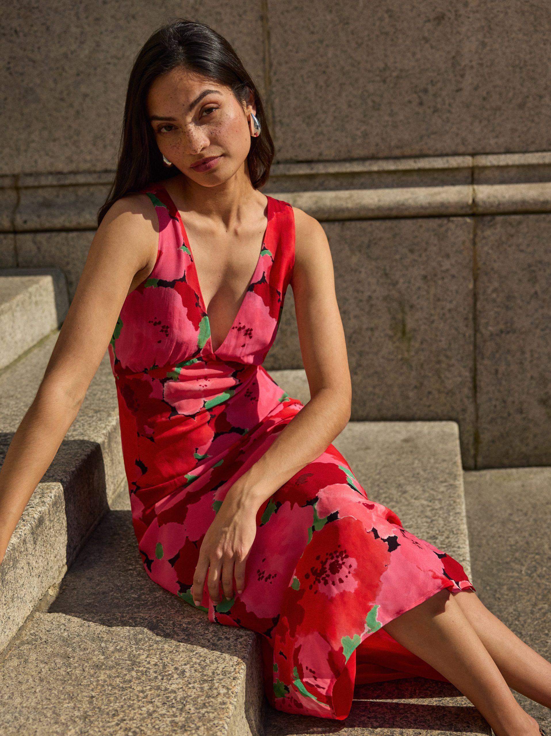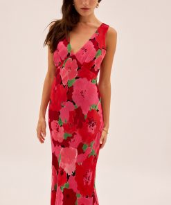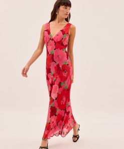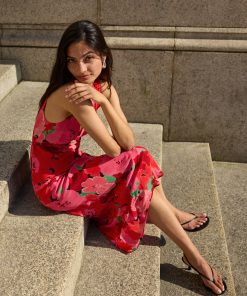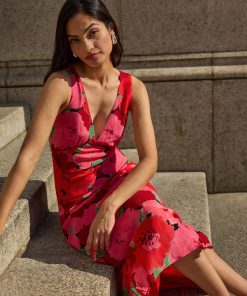 The bestselling silhouette you know and love – now in a painterly pink floral print. The Danna Pink Watercolour Floral Print Dress is cut on the bias for a beautifully skimming fit, with a deep V-neckline and a flattering tie at the back for added shape. The sleeveless design and midi length make it a timeless staple for everything from weddings to weekend plans.
