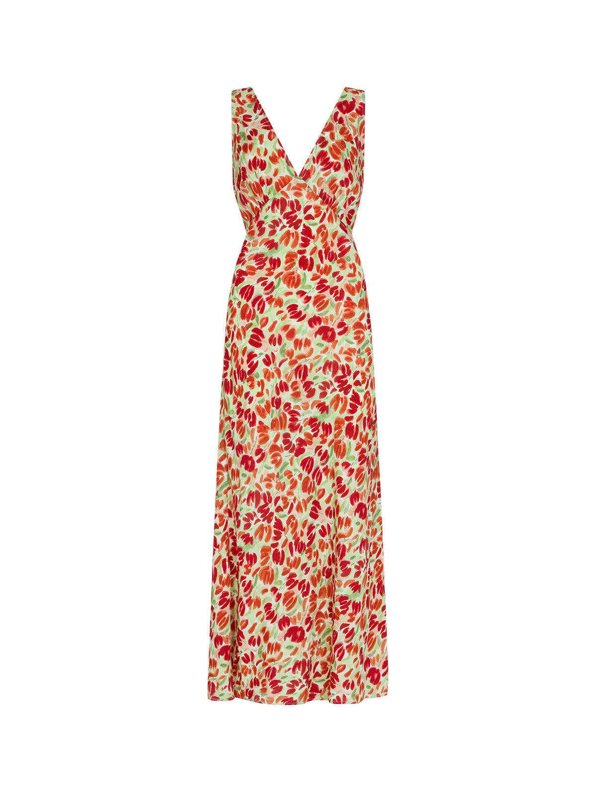 The bestselling silhouette you know and love – now in a bold painterly tulip print. The Danna Tulip Print Dress is cut on the bias for a beautifully skimming fit, with a deep V-neckline and a flattering tie at the back for added shape. The sleeveless design and midi length make it a timeless staple for everything from weddings to weekend plans.