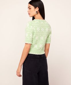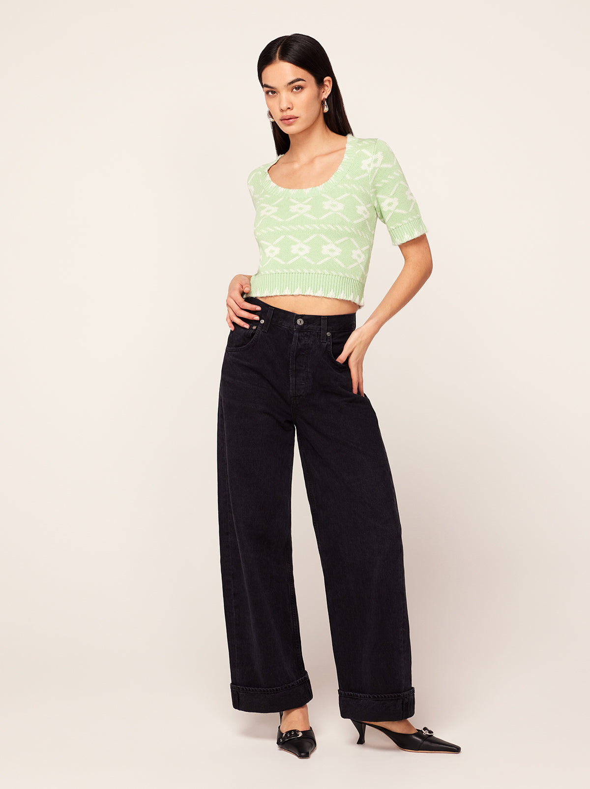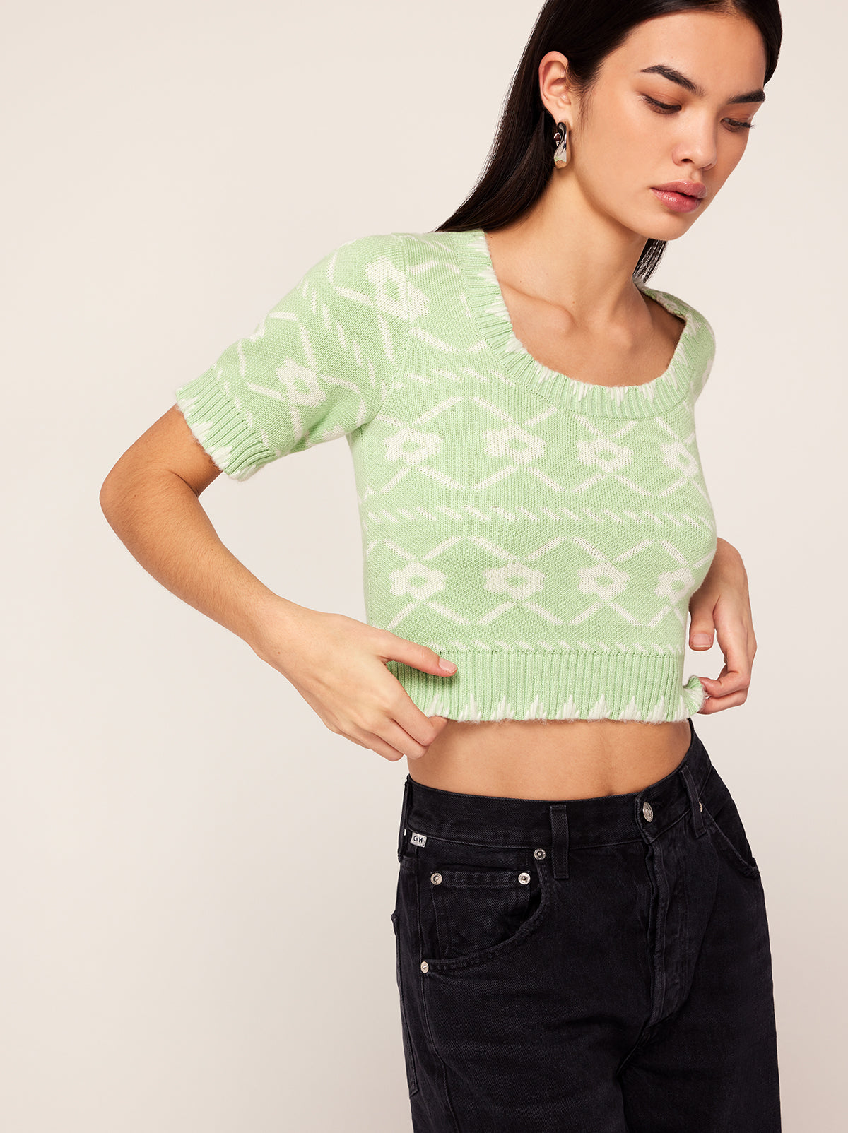The cardigan of your springtime dreams. Dora is a scoop neck, cotton blend knit in the perfect cropped length to skim the top of your high-waisted jeans. Her mood-boosting floral intarsia is the perfect pick-me-up and her cool pistachio colour will look great with your favourite denim.