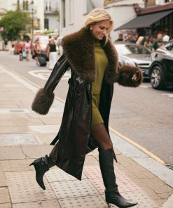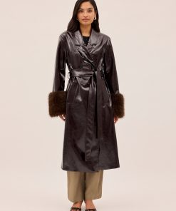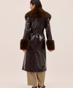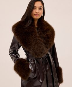 All eyes on Lara – dare we say, THE coat of the season and the ultimate statement-maker. Cut from premium, chocolate brown vinyl, this double-breasted showstopper is finished with a detachable plush faux-fur collar and cuffs in deep chocolate for maximum drama. The self-fabric belt cinches the waist for a sculpted silhouette, while the versatile trench-meets-coat design offers endless styling potential. Belt it over tailoring for a power moment, throw it over denim for off-duty impact, or wear it open to showcase your look beneath. An irresistible, elevated update to our cult favourite Simone coat – this is the one everyone will be talking about.
