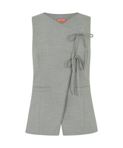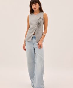 Our bestselling waistcoat, reimagined with a twist. The Lea Waistcoat features a sharp, tailored fit with jet pockets and a unique asymmetric tie front for a feminine finish. Cut from deadstock grey tailoring fabrication, it’s designed to be styled solo or layered – wear it with matching Harley Grey Tailored Shorts or your favourite denim for an effortless look.