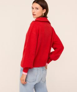 She’s back! Our #KITRIgirls favourite Lorna is a lightweight alpaca blend sweater featuring a pearl-tipped quarter-zip and drop shoulder, puffed sleeves. This season, she returns in a brand new colourway: warming red with pale pink tipping. We know you’ll love her.
