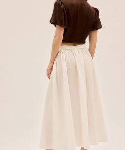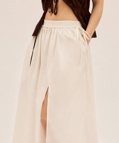 The skirt that goes with everything and makes a statement doing it. The Lucinda Skirt is cut from crisp white cotton in a full, voluminous silhouette with a high split over the leg for ease and movement. A subtle tie detail at the side adds a playful finish, while the fully lined design keeps it effortless and wearable.