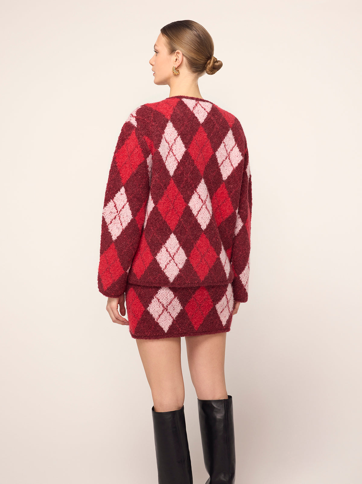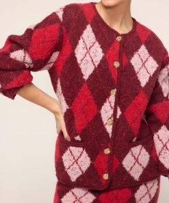 KITRI Women’s Pandora Burgundy Argyle Knit Cardigan | Burgundy Argyle