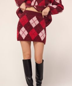 Just tell them it’s vintage. Susan is a cosy mini skirt that combines retro charm with modern-day wearability. Her bold burgundy argyle print is eye-catching yet refined, and the textured bouclé fabric provides warmth and comfort as the cooler months roll in. Susan’s flattering fit ensures she’ll quickly become a favourite in your wardrobe, whether you style her with tights and boots or opt for a bare-legged look when the weather allows. For the ultimate throwback vibe, pair Susan with the matching Pandora Burgundy Argyle Knit Cardigan for a co-ordinated set that’s both nostalgic and contemporary.
