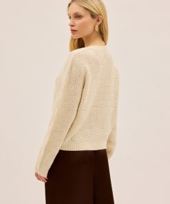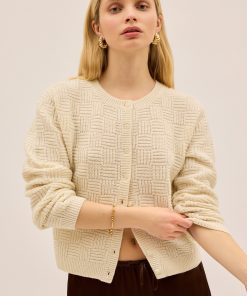 A modern take on a wardrobe classic. The Terri cardigan is crafted from a soft textured knit with a geometric pattern woven throughout adding depth to an everyday layer. Designed with a relaxed round neckline, streamlined button placket and easy, slightly oversized fit.