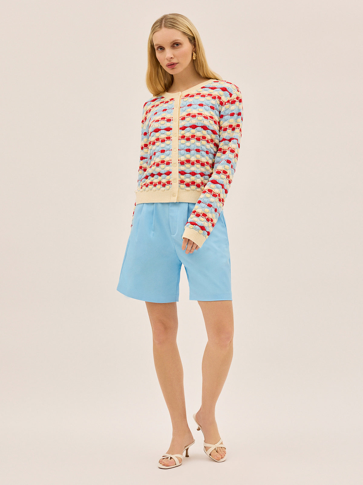 Spun in a joyful multicoloured textured knit, Terri is a wear-anywhere cardigan with a relaxed fit and soft round neckline. Featuring a classic button placket and easy silhouette, it’s perfect layered over the matching Margaux dress or styled simply with denim or tailoring.